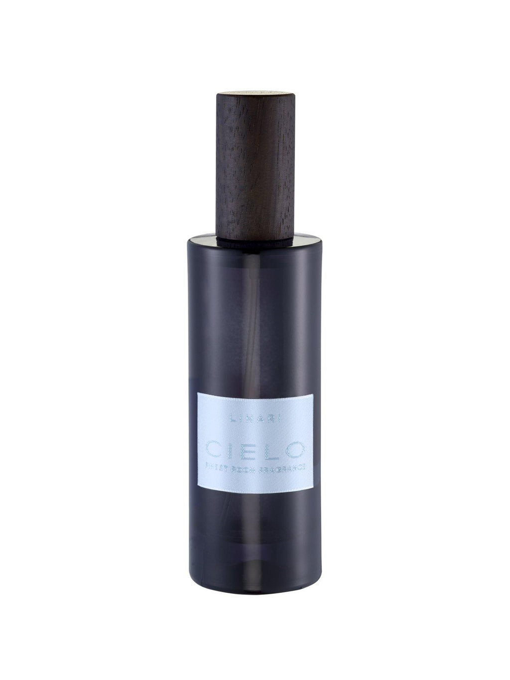 LINARI-CIELO rumsprayen kommer i en sort-blå flacon lavet af italiensk glas med et eksklusivt zebrano trælåg og en satin etiket af høj kvalitet.