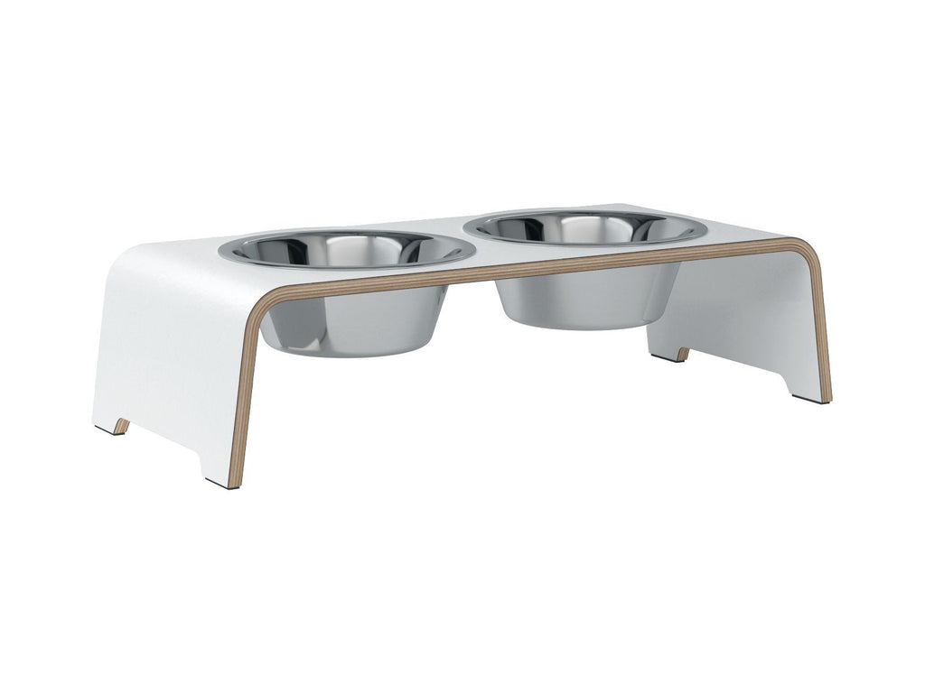 Designelskere demonstrerer ægte stil med dogBar®: Dens massive ægte træ krop danner en klar kontrast til de indrammede, højpolerede skåle i rustfrit stål - en hundeskål til de højeste krav til form og funktion. Alternativt fås dogbar® med porcelænsskåle.