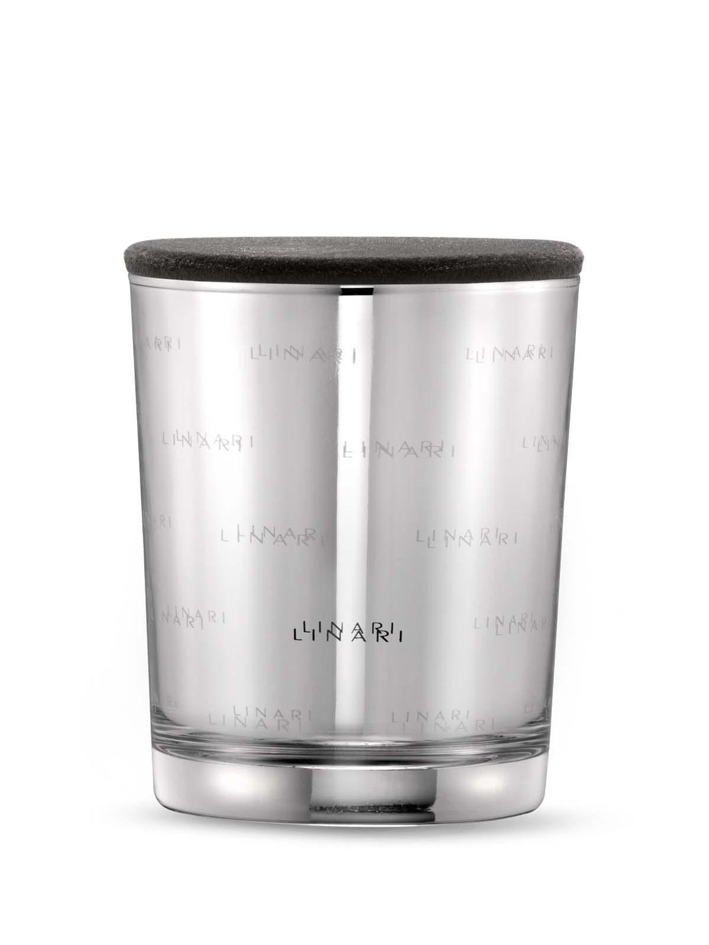 Det innovativt dekorerede stearinlysglas i et luksuriøst, puristisk design blev belagt på indersiden i to farver i en kompleks proces. Set udefra har den en højglans sølvfinish, som får det bedste frem i kontrast til den lysreflekterende glasbund. Indefra har glasset en mystisk sort farve. Låget til lysglasset er belagt med dyb sort fløjl og har en sølvfarvet prægning af LINARI-logoet. Denne kan bruges dekorativt som en coaster til alle LINARI stearinlys og diffusorer. LINARI duftlysene er håndhældt af en af de mest kendte lysproducenter. Brugen af højkvalitetsvoks fører til en ekstraordinær hurtig spredning af duften i rummet, da overfladevoksen smelter tidligt. Det anvendte patenterede MaxEssence®-duftsystem er kendetegnet ved en særlig høj koncentration af duftstoffer, hvilket resulterer i en særlig intensiv duftudvikling i voksens faste og smeltede tilstand. Brændetid op til 45 timer.