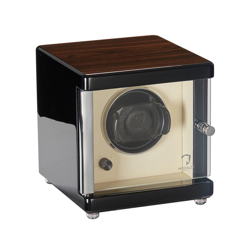 Den luksuriøse Ambiete uropruller fra Modalo imponerer med sine fint udformede detaljer og et udvalg af fem designvarianter. Det ædle og samtidig stabile hus er lavet af newzealandsk træ. I kombination med en stor glasdør og belysning gør dette Ambiente til en ædel uropruller til dit hjem. Overfladen består af højglans pianolak og afspejler det ædle håndværk. Den luksuriøse uropruller Ambiente MV4 er en eksklusiv og samtidig ædel uropruller, som garanterer en langtidsholdbar opbevaring af dine ure med en holdbar teknologi.