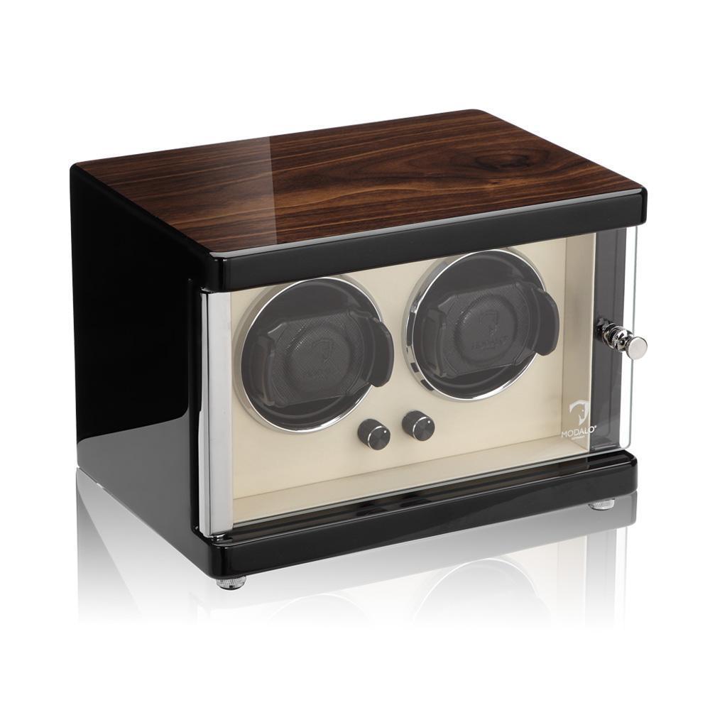 Den luksuriøse Ambiete uropruller fra Modalo imponerer med sine fint udformede detaljer og et udvalg af fem designvarianter. Det ædle og samtidig stabile hus er lavet af newzealandsk træ. I kombination med en stor glasdør og belysning gør dette Ambiente til en ædel uropruller til dit hjem. Overfladen består af højglans pianolak og afspejler det ædle håndværk. Den luksuriøse uropruller Ambiente MV4 er en eksklusiv og samtidig ædel uropruller, som garanterer langtidsholdbar opbevaring af dine ure med holdbar teknologi.
