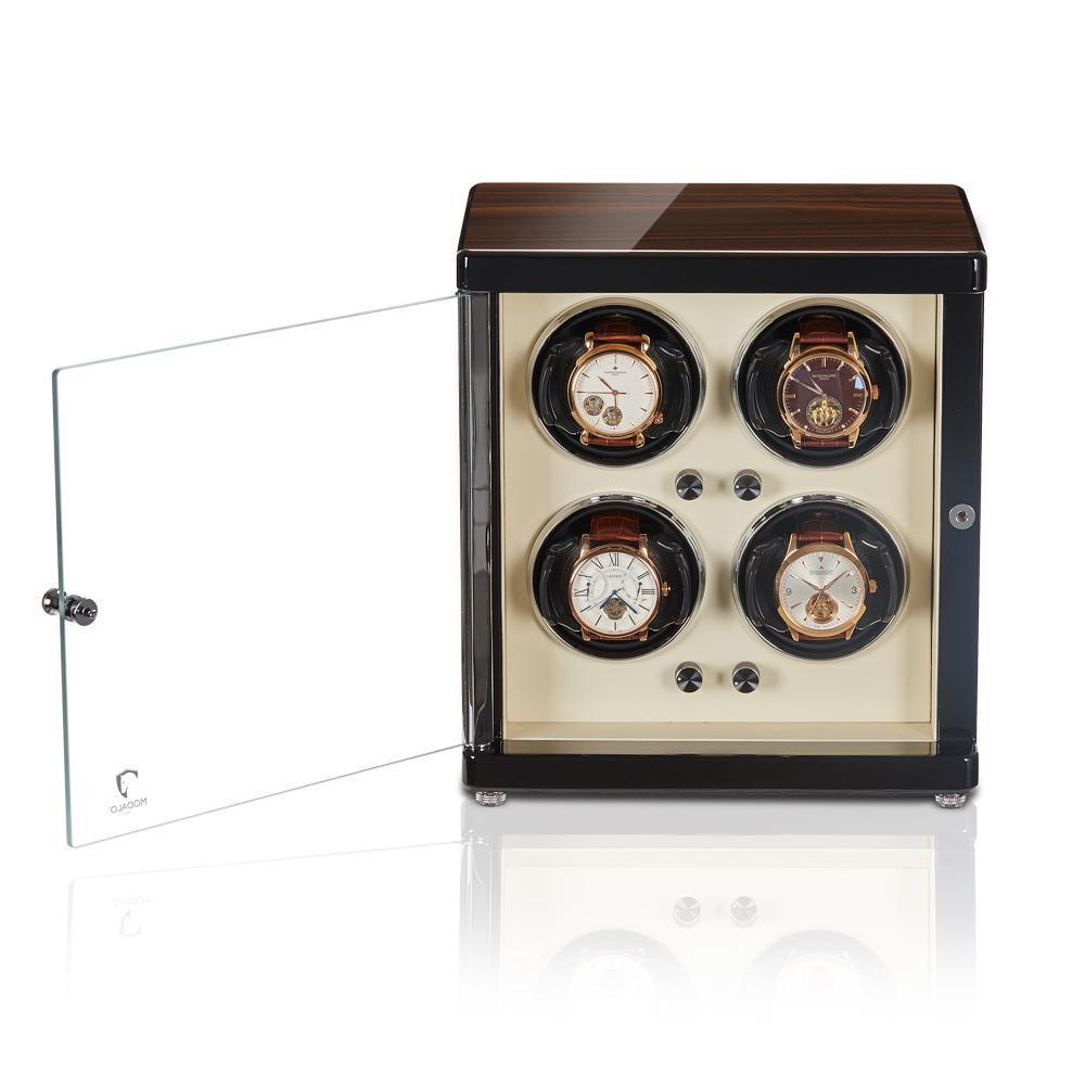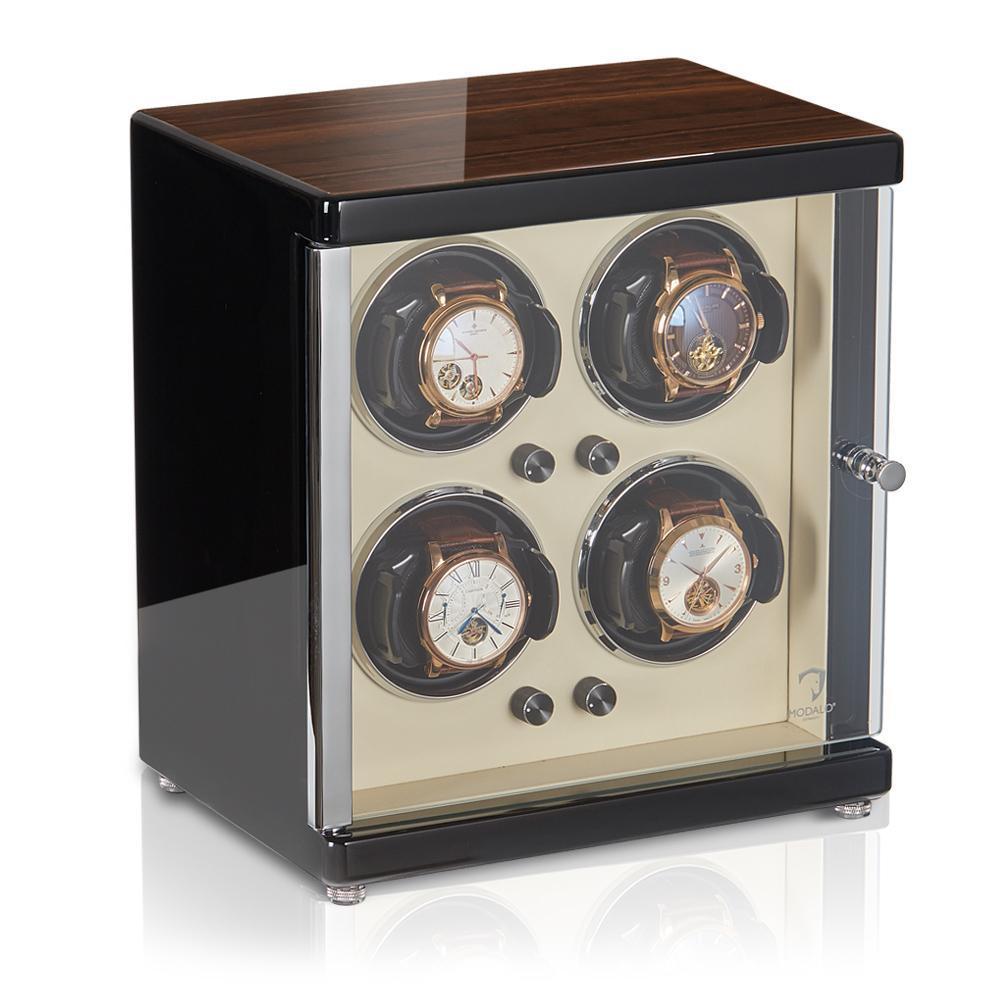 Den luksuriøse Ambiete uropruller fra Modalo imponerer med sine fint udformede detaljer og et udvalg af fem designvarianter. Det ædle og samtidig stabile hus er lavet af newzealandsk træ. I kombination med en stor glasdør og belysning gør dette Ambiente til en ædel uropruller til dit hjem. Overfladen består af højglans pianolak og afspejler det ædle håndværk. Den luksuriøse uropruller Ambiente MV4 er en eksklusiv og samtidig ædel uropruller, som garanterer langtidsholdbar opbevaring af dine ure med holdbar teknologi.