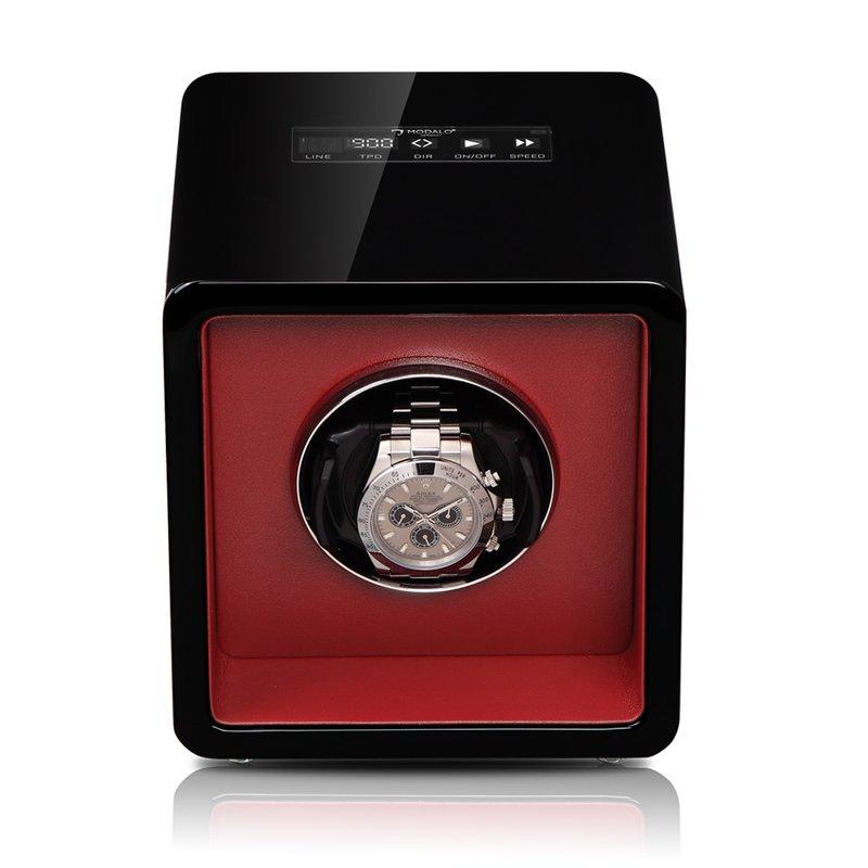 Præcis håndværk og brug af komponenter af høj kvalitet, såsom det oplyste touch-display, den nyeste motorteknologi og huset lavet af massivt newzealandsk træ med en højglans finish, gør MODALO SATURN MV4 til en eksklusiv uropruller, der opfylder højeste krav. Den kompakte størrelse og den valgfrie batteridrift muliggør en lang række anvendelsesmuligheder, for eksempel i pengeskabe eller på rejser. Seks udsøgte farvekombinationer tilbyder den rigtige stemning for enhver smag. Takket være dens enkle betjening er MODALO SATURN MV4 ikke kun velegnet til ambitiøse urejere, men også til begyndere.