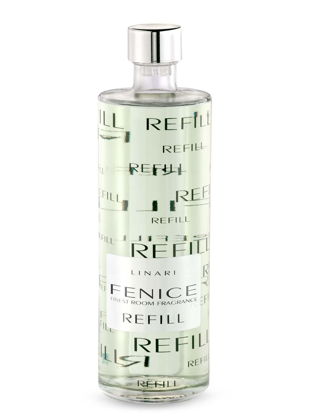 The 500 ml diffuser REFILL is offered in the shapely original LINARI glass bottle, which guarantees the high quality of LINARI perfumes. The transparent original LINARI glass flacon is decorated with a variety of shapely REFILL logos and comes with a decorative, silver-colored screw cap. A new original set of capillary rods is included with the diffuser REFILL.