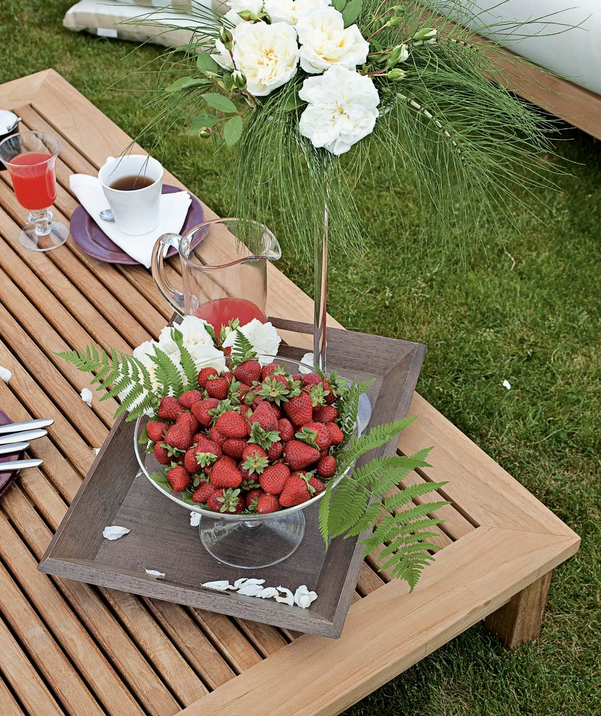 The CHELSEA coffee tables naturally complement arcades and large verandas thanks to the linear motif of the top.