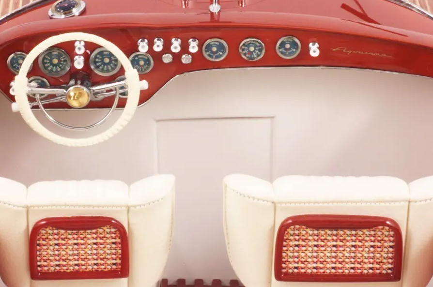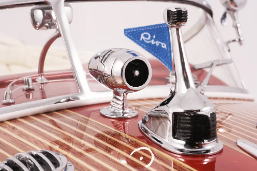 This official Riva Aquarama Special model boat is made from high-quality wood (beech wood) and fittings (chrome brass) by our jewellers. Real padding.