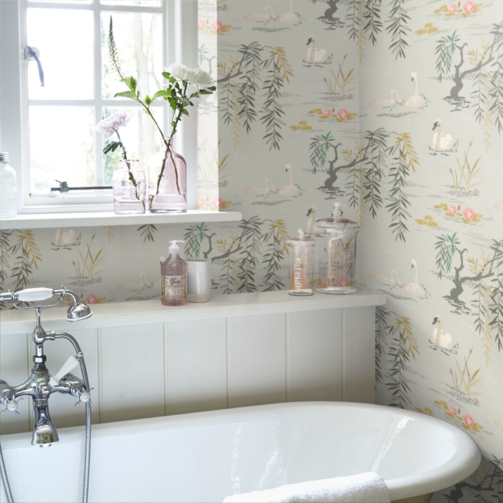 NINA CAMPBELL Tapete Swan Lake aus der Kollektion SYLVANA ist eine hochwertige Wandbekleidung für stilvolle Wohn- und Objektbereiche. Sie eignet sich für moderne Wandgestaltung und setzt je nach Farbvariante gezielte Akzente.
