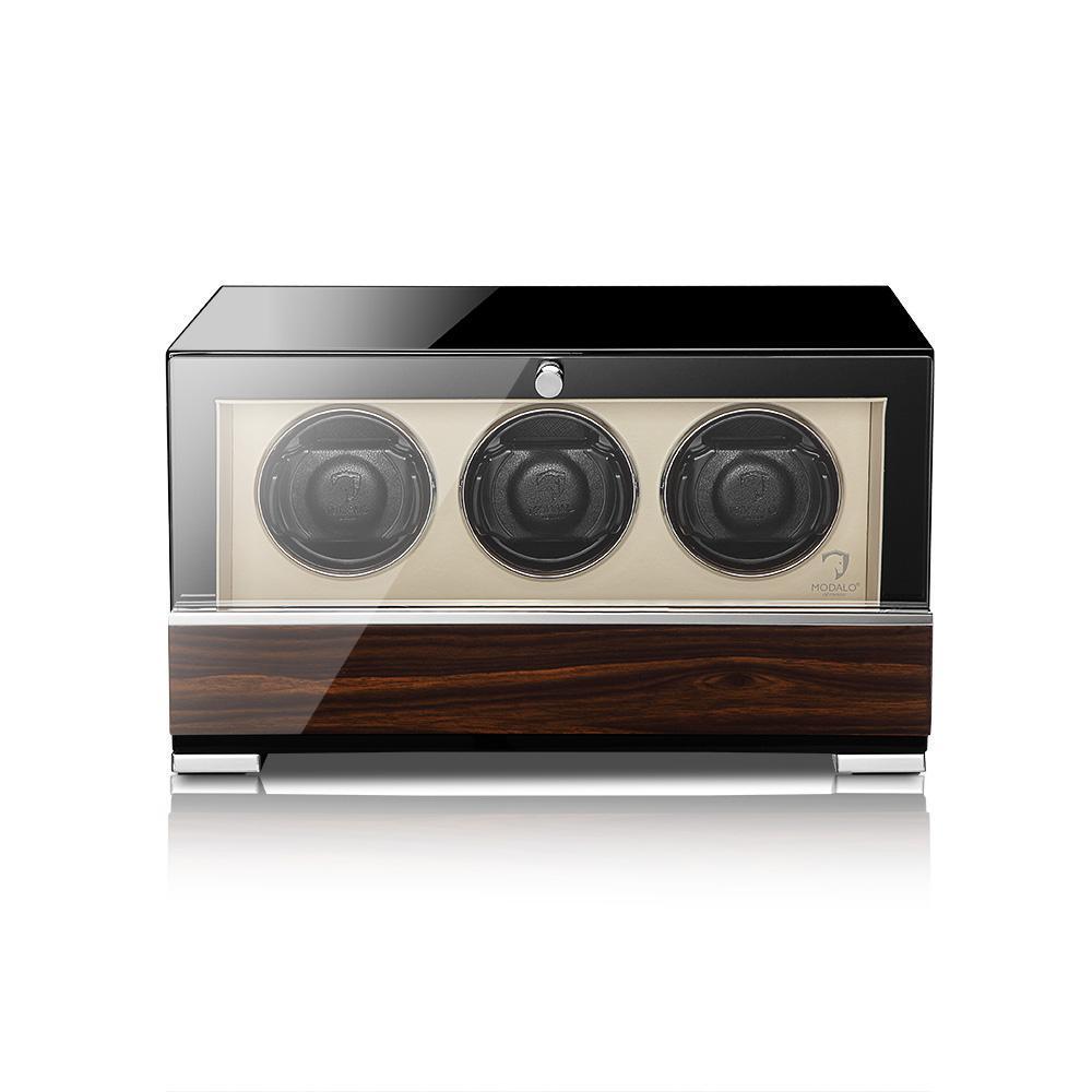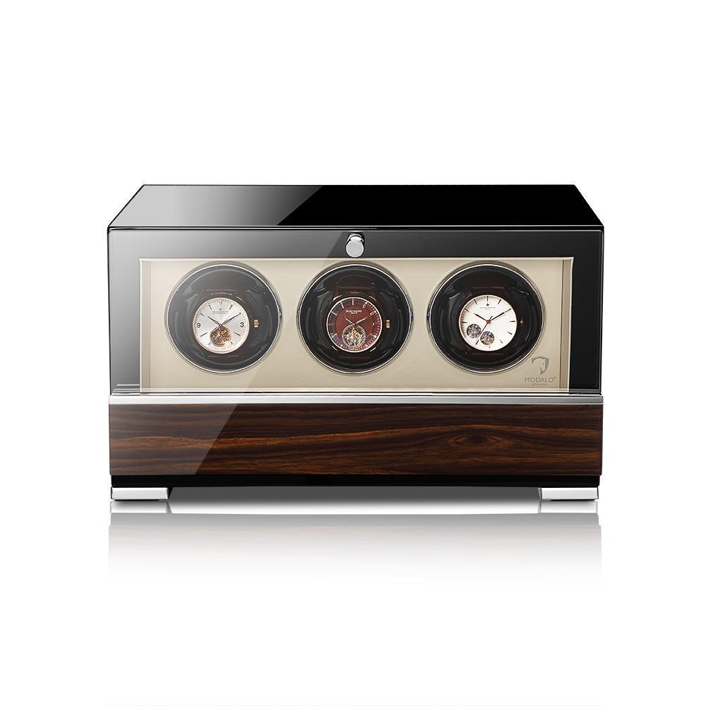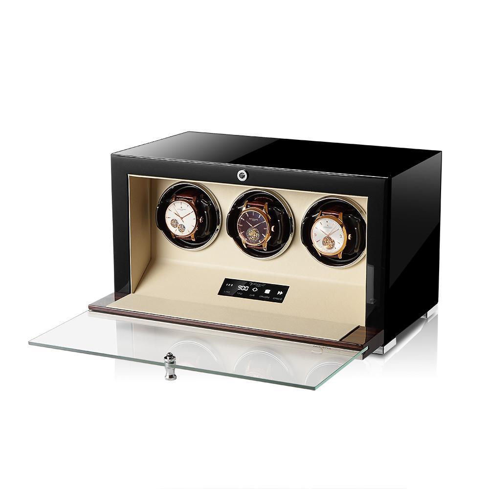The fourth generation of the CLASICO presents itself as perfect in form and innovative. Thanks to the aesthetic and clear design, a sublime atmosphere is created in which the watches appropriately take their place. The solid housing has been finished with piano lacquer and, together with the large door made of safety glass, provides optimal protection. A high level of operating comfort is guaranteed by the newly designed touch display, with which the three motors can be individually controlled and other functions, such as the fast winding or the lighting settings, can be called up. By keeping to the 12 o'clock position during the rest phases and the intelligent LED lighting, every interaction becomes a pleasure. Four exquisite design variants are available for the discerning taste.