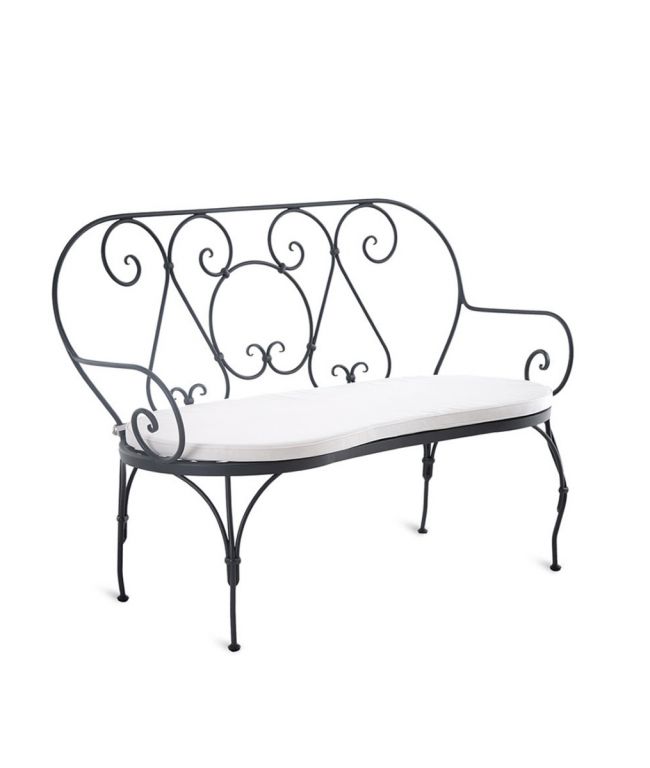 The decoration of the backrests and table legs made of hand-forged iron characterizes the collection with its romantic and well-proportioned line.