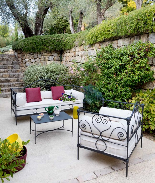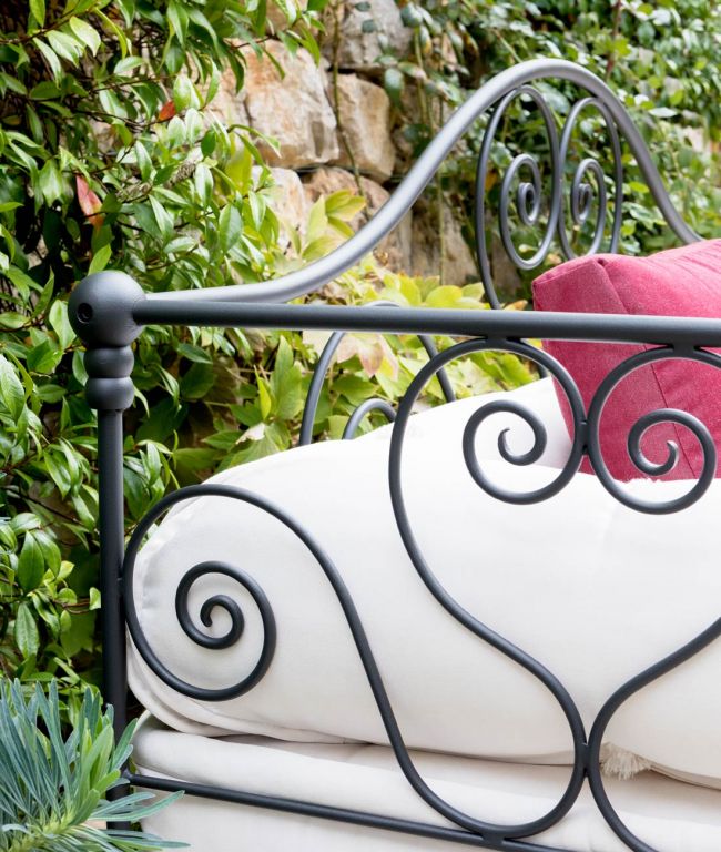 The AURORA series, made of galvanized wrought iron with powder coating, takes up a Tuscan design from the end of the 18th century. Together with the classic and elegant natural upholstery, which is offered separately, this series also fits perfectly into the interior.