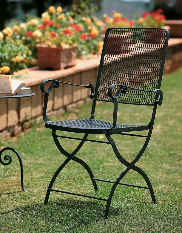 Der elegante ArmStuhl AURORA aus Schmiedeeisen ist in den Farben Grafitgrau.