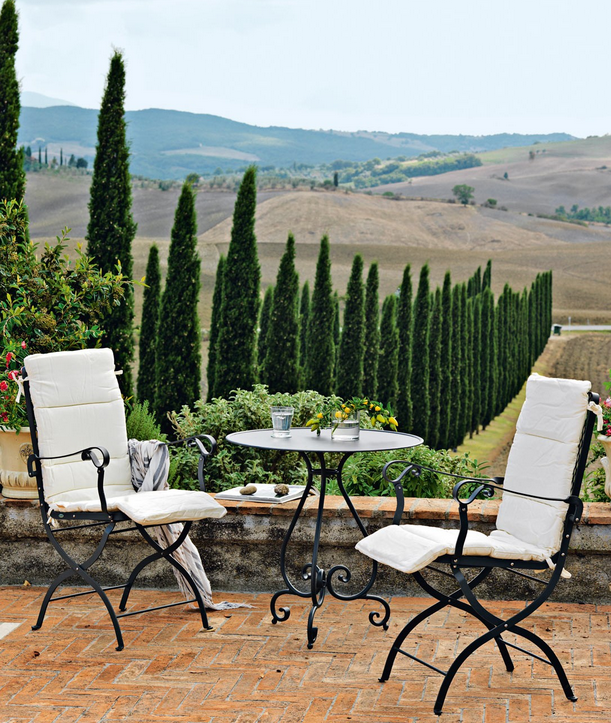 Er passt ausgezeichnet zu den Tischen AURORA. Er beruht auf einem Modell mit französischer Tradition und ist aus Schmiedeeisen hergestellt.
