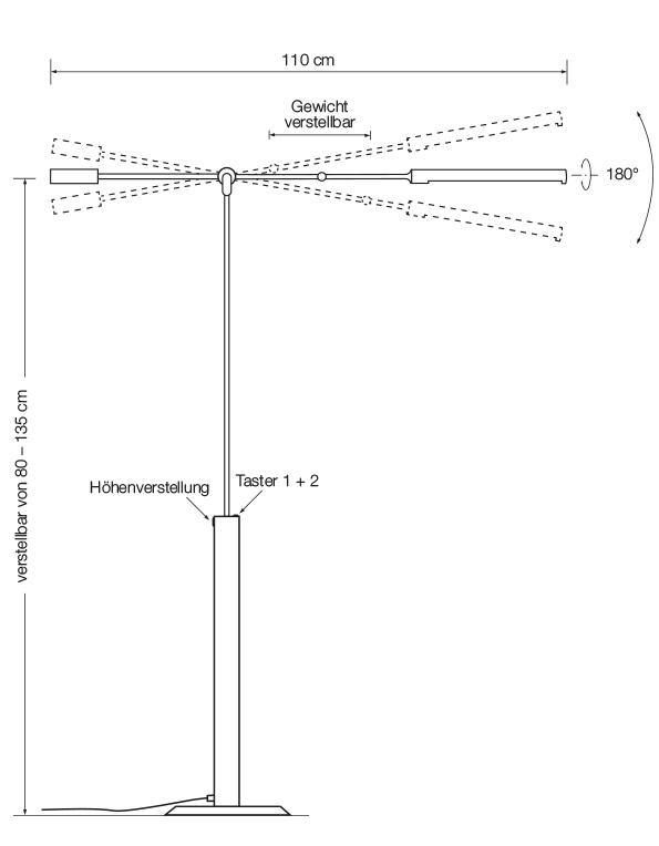Höhe:  verstellbar von 80 – 135 cm