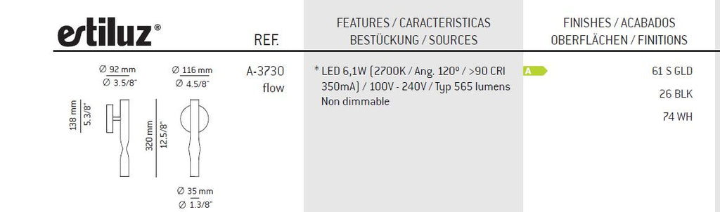 LED 6,1W (2700K / Ang. 120º / >90 CRI / 350mA)100V - 240V / Typ* 565 lumensNon dimmable