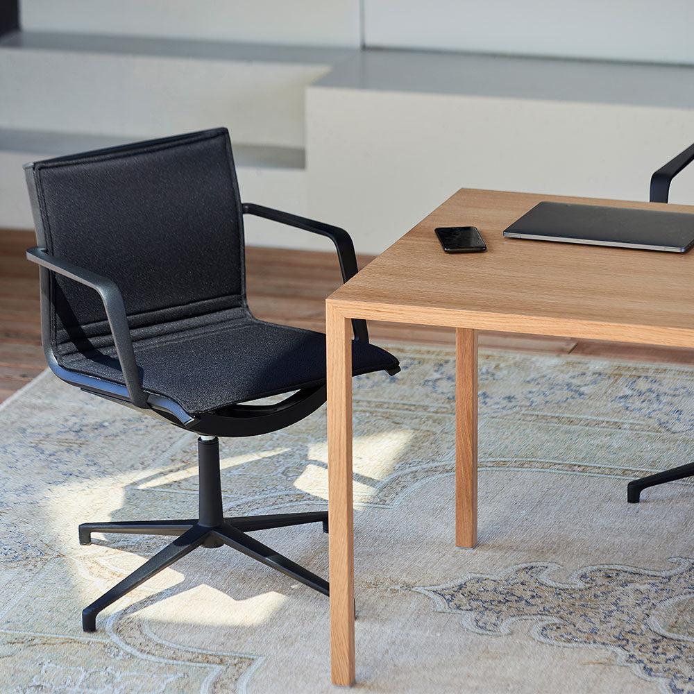 Gestell: Aluminium, pulverbeschichtet schwarz; Bezug: 100% Polyester, trevira cs