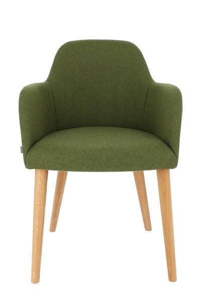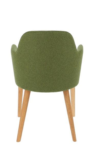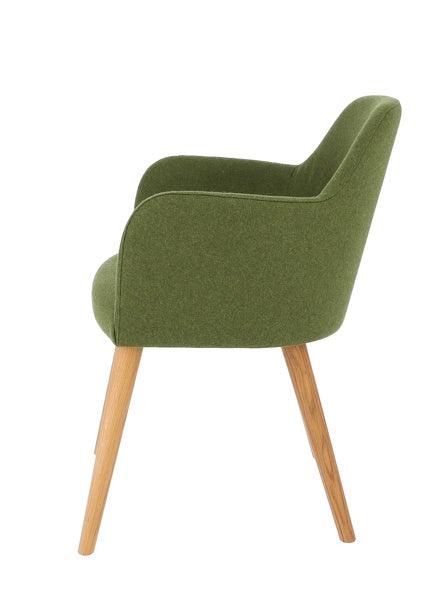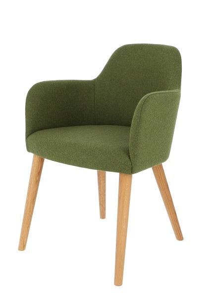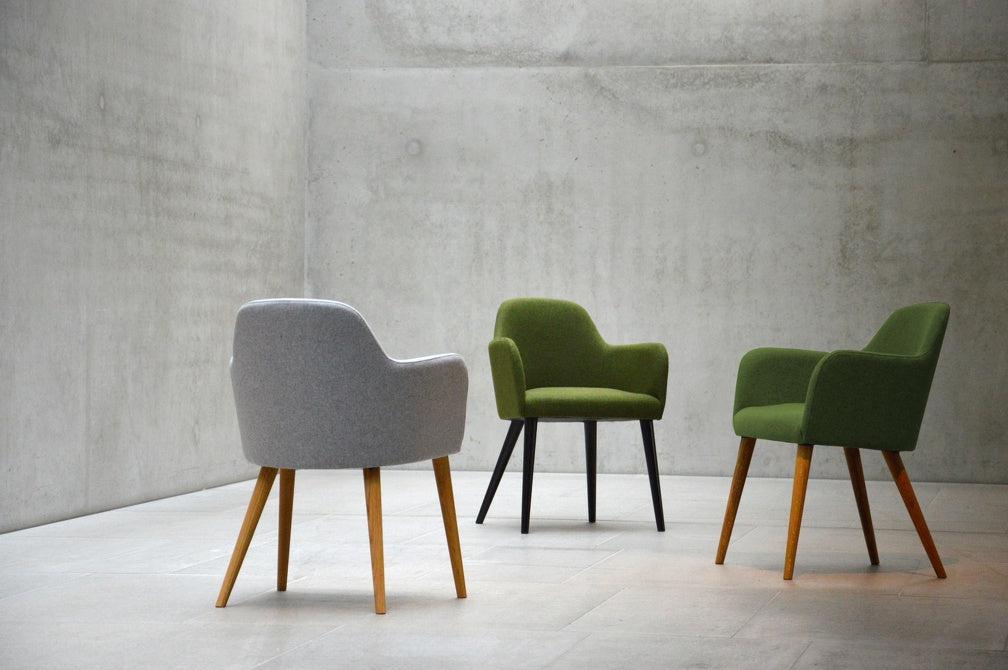 Gestell: Eiche massiv, geölt; Bezug: Loden (100% Schurwolle), teflonbeschichtet