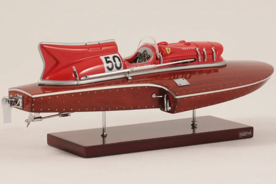 Dieses Modellboot Arno XI mit einer Länge von 25 cm ist eine Nachbildung des legendären Wasserflugzeugs. Dieses Modell wird komplett von Hand aus edlen Materialien gefertigt: Holz (Buchenholz), Marinepolster. Alle Beschlagteile sind in verchromtem Messing von Juwelieren gefertigt. Es werden 5 Lackschichten aufgetragen, um einen hervorragenden Lackglanz zu erzielen.