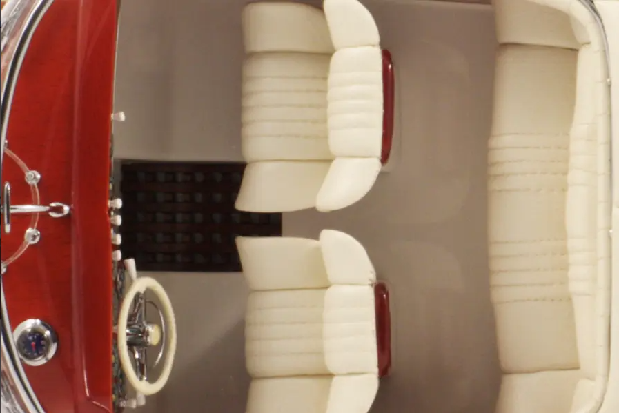 Dieses offizielle Modellboot Riva Aquarama Special wird aus hochwertigen Hölzern (Buchenholz) und mit Beschlagteilen (Chrommessing) von unseren Juwelieren gefertigt. Echte Polsterung.