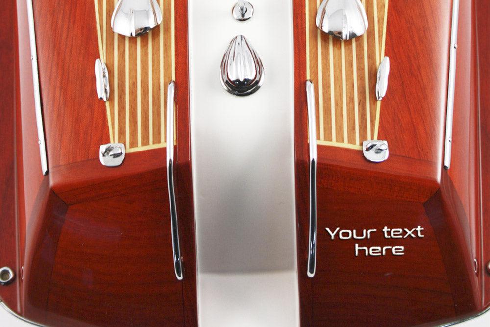 Dieses offizielle Modellboot Riva Aquarama Special wird aus hochwertigen Hölzern (Buchenholz) und mit Beschlagteilen (Chrommessing) von unseren Juwelieren gefertigt. Echte Polsterung.