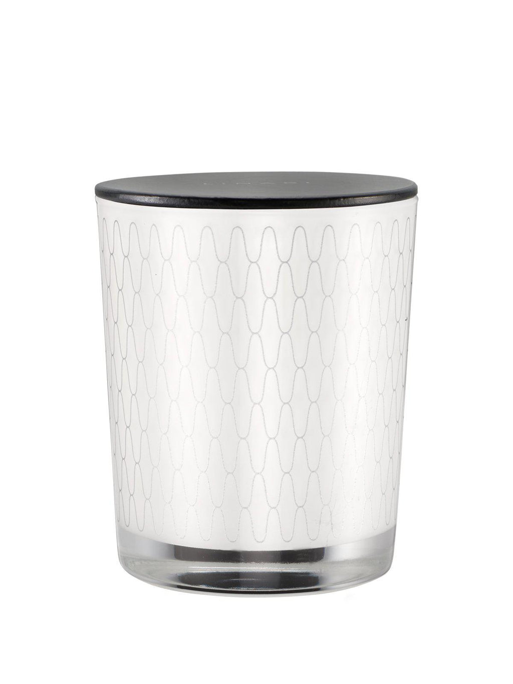 Die LINARI-NOBILE Duftkerze aus hochwertigem, naturfarbenem Wachs wird im attraktiven, weißmatten französischen Glas mit massivem transluszenten Glasboden geliefert, dessen Oberfläche mit einem zeitlos eleganten Muster aus silberfarbenen Wellen verziert ist und einen wertvollen schwarzmatten Holzdeckel mit LINARI-Prägung besitzt. Dieser kann dekorativ als Untersetzer für alle Kerzen- und Diffusoren von LINARI universell verwendet werden. Das patentierte MaxEssence® Duftsystem zeichnet sich durch eine besonders hohe Duftstoff-Konzentration aus, wodurch eine besonders intensive Duftentfaltung erzielt wird. Brenndauer bis zu 45 Stunden.