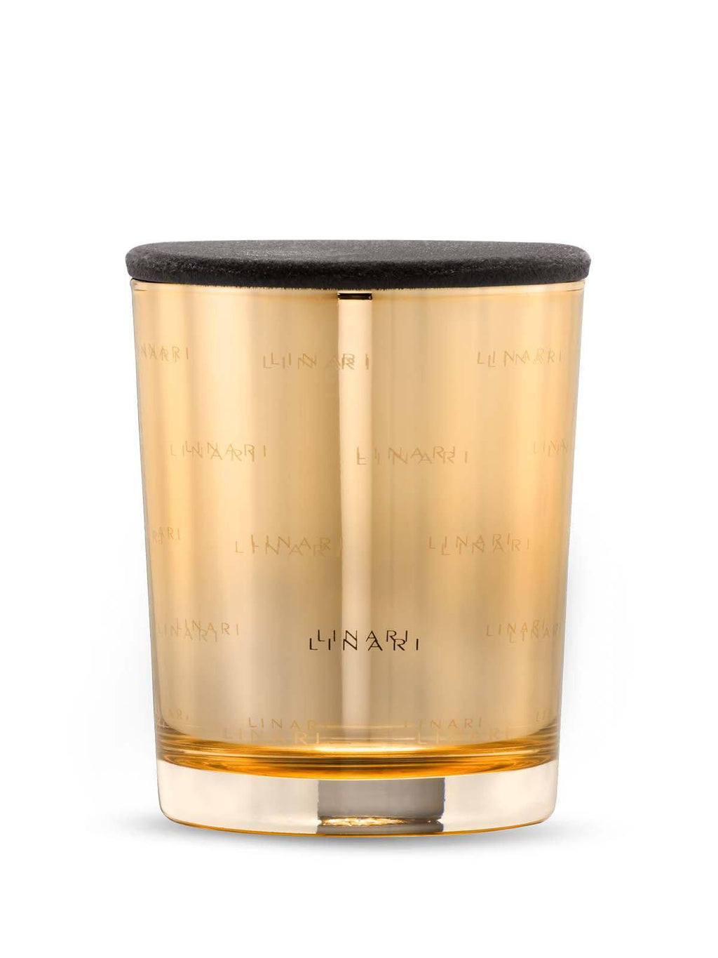 Das innovativ dekorierte Kerzenglas im luxuriös-puristischen Design wurde in einem aufwändigen Verfahren zweifarbig innenseitig beschichtet. Von außen betrachtet ist es hochglänzend goldfarben, wodurch der lichtreflektierende Glasboden sehr schön kontrastreich zur Geltung kommt. Von innen weist das Glas eine mystisch-schwarze Farbe auf. Der mit tiefschwarzem Samt beschichtete Kerzenglasdeckel ist mit einer silberfarbenen Prägung des LINARI-Logos versehen. Dieser kann dekorativ als Untersetzer für alle Kerzen- und Diffusoren von LINARI universell verwendet werden. Die LINARI-Duftkerzen werden bei einer der renommiertesten Kerzenmanufakturen handgegossen. Die Verwendung von hochqualitativem Wachs führt zu einer außerordentlich schnellen Ausbreitung des Duftes im Raum, da die oberflächliche Wachsschmelze früh einsetzt. Das verwendete und patentierte MaxEssence® Duftsystem zeichnet sich durch eine besonders hohe Duftstoff-Konzentration aus, wodurch eine besonders intensive Duftentfaltung im festen und im geschmolzenen Zustand des Wachses erzielt wird. Brenndauer bis zu 45 Stunden.