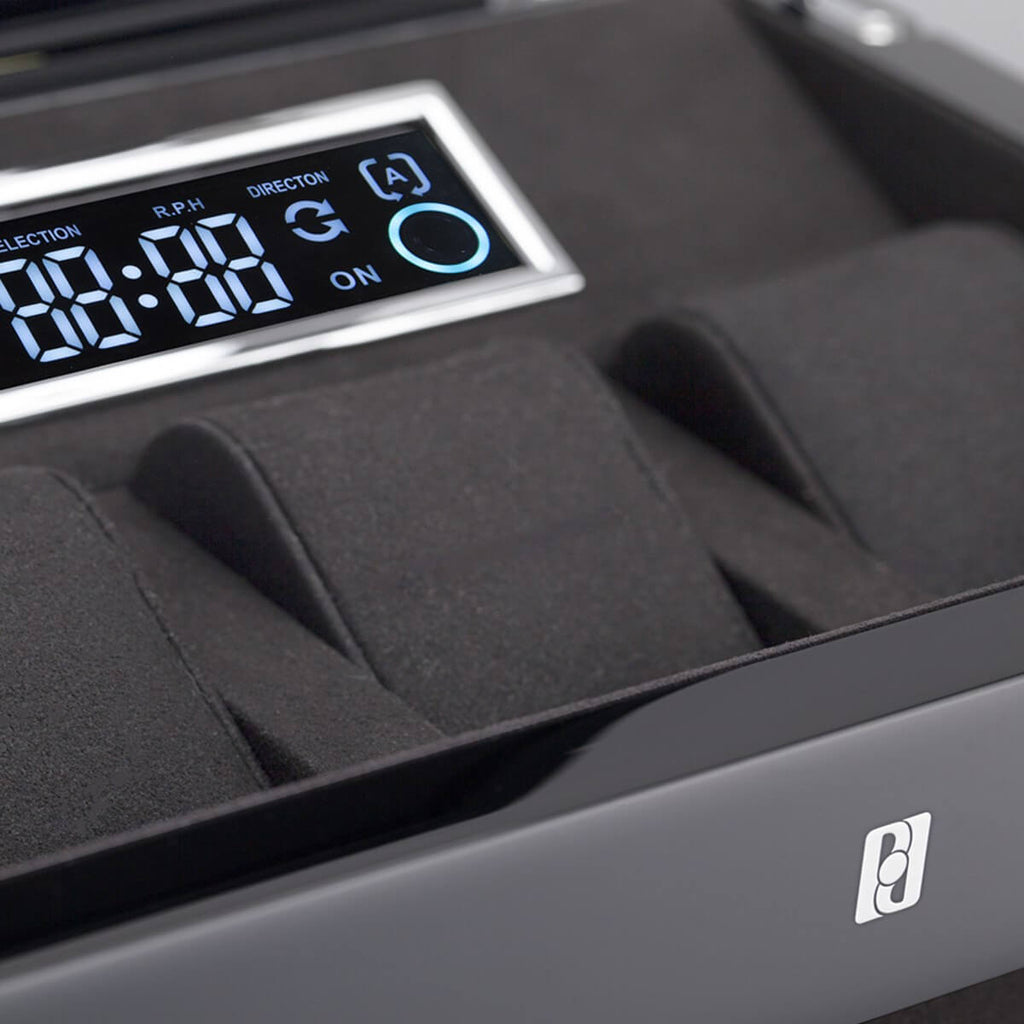 Dieser Bestseller bietet Bewegung für 2 Uhren, im abschließbaren Deckel findet sich eine großzügige Ablagefläche für weitere 3 Uhren zur Aufbewahrung. Das liebevoll handgefertigte Holzgehäuse des Uhrenbewegers ist mit einem vielschichtig aufgetragenem Hochglanzlack veredelt. Die ausgereifte Technik und die einfache Bedienung über Push-Button überzeugen jeden Uhrensammler.