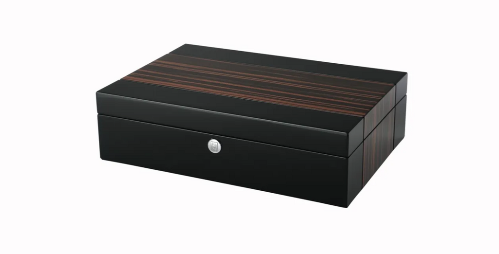 Die edle Paul Design - Uhrenbox Gentlemen 10 zur Aufbewahrung von 10 Uhren ist handgefertigt und mit vielschichtig aufgetragenem Hochglanzlack veredelt - ein Muss für jeden Uhrensammler! Mit dieser Uhrsammelkassette sind Ihre Lieblingsuhren richtig aufgehoben. Mit dem Push-Button lässt sich die Uhrenbox leicht öffnen. Verchromte Scharniere und ein edler Verschluss komplettieren die Uhrsammelkassette.