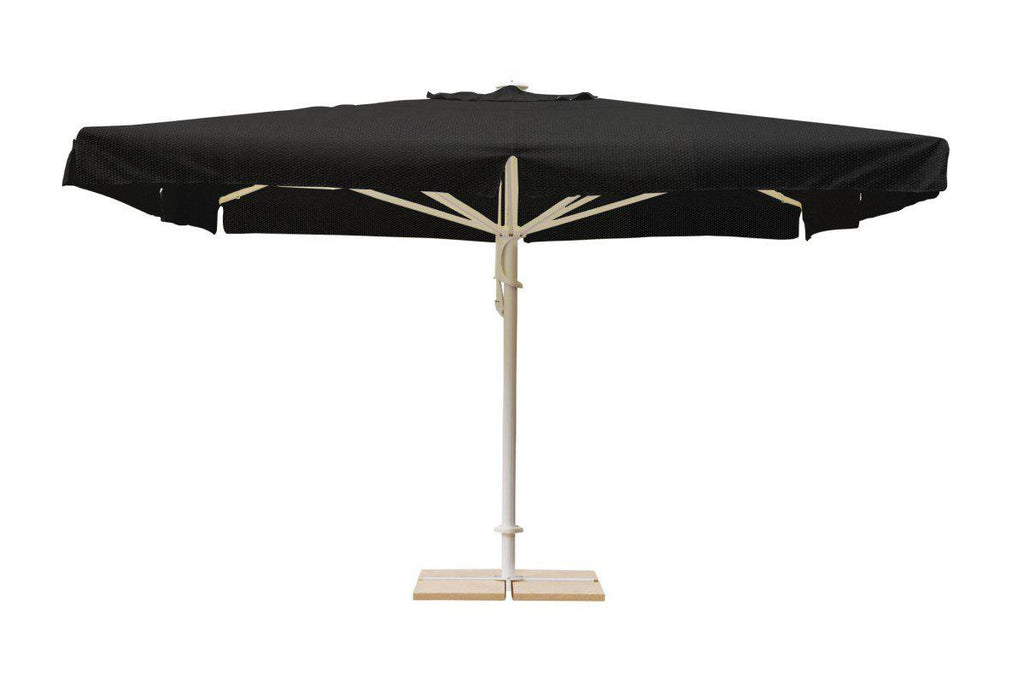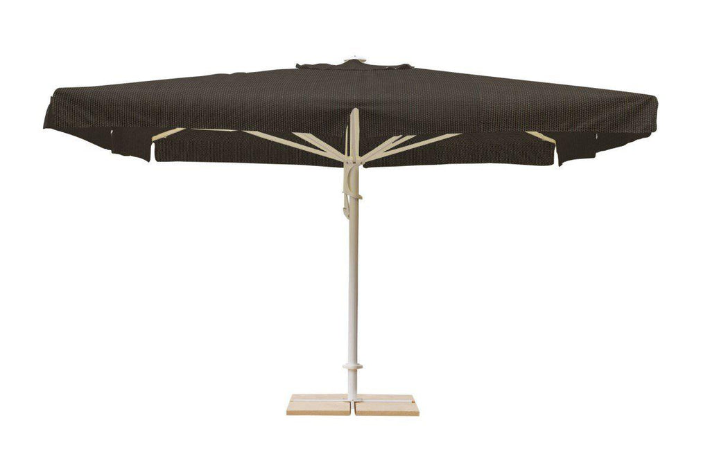 Quadratischer Sonnenschirm 400 x 400 cm Lackierte Aluminiumstruktur, Abdeckung Stoff 21 Point Stoffpalette oder Batyline 35, 36 oder 57 Basis aus lackiertem Aluminium mit 4 Keramikfliesen, 35 kg jede.