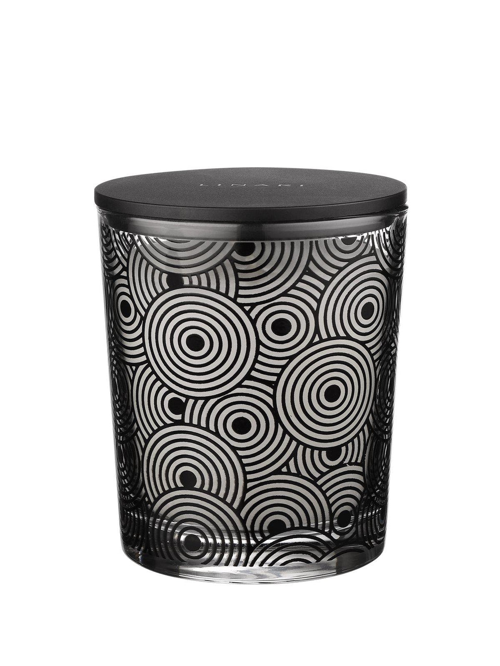 Das tiefschwarze Design der Duftkerze LINARI-SASSO stellt einen prätentiösen Meilenstein dar. Im Kontrast zur hochtransparenten Glasoberfläche steht das abstrakte und feinstrukturierte Kieselsteindekor, das das Kerzenglas raffiniert diffus umgibt. Die Verwendung naturfarbenen Wachses lässt das graphische Kieselsteindekor maximal und puristisch zur Geltung kommen. Der minimalistische, mattschwarze Deckel aus massivem Bakelit mit silberfarbenem LINARI-Logo rundet den avantgardistischen Look ab. Dieser kann dekorativ als Untersetzer für alle Kerzen- und Diffusoren von LINARI universell verwendet werden. Brenndauer bis zu 45 Stunden.