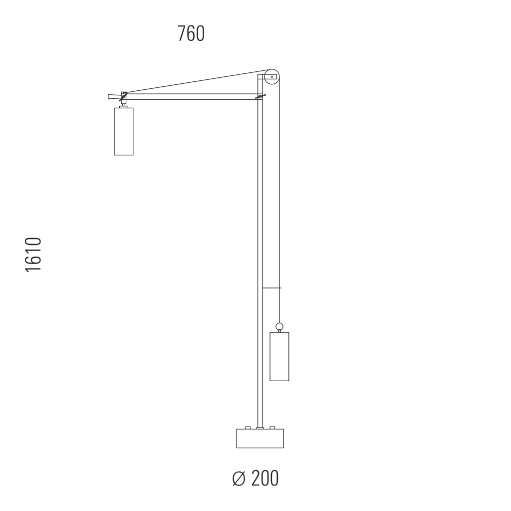 | Abmessungen | H: 161cm, (Fuß) Ø: 20cm, Ausladung: 76cm |