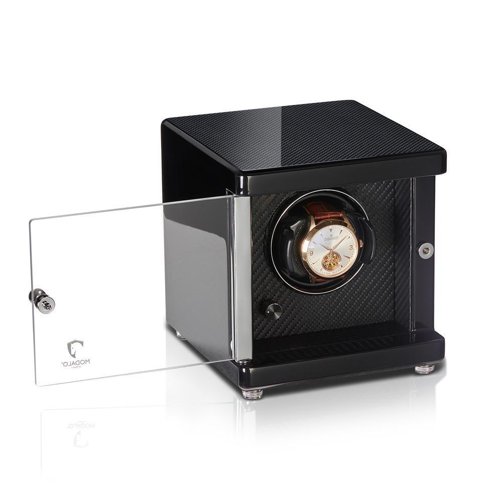 Der luxuriöse Uhrenbeweger Ambiete von Modalo besticht durch edle ausgearbeiteten Details und einer Auswahl von fünf Designvarianten. Das edle und zugleich stabile Gehäuse ist aus Neuseelandholz gefertigt. Im Zusammenspiel mit einer großen Glastür und einer Beleuchtung macht dies den Ambiente zu einem edlen Uhrenbeweger für ihr Zuhause. Die Oberfläche besteht aus hochglänzendem Klavierlack und spiegelt die edle Verarbeitung wieder. Der luxuriöse Uhrenbeweger Ambiente MV4 ist in ein exklusiver und gleichzeitig edler Uhrenbeweger, der mit einer langlebigen Technik eine dauerhafte Aufbewahrung ihrer Uhren gewährt.