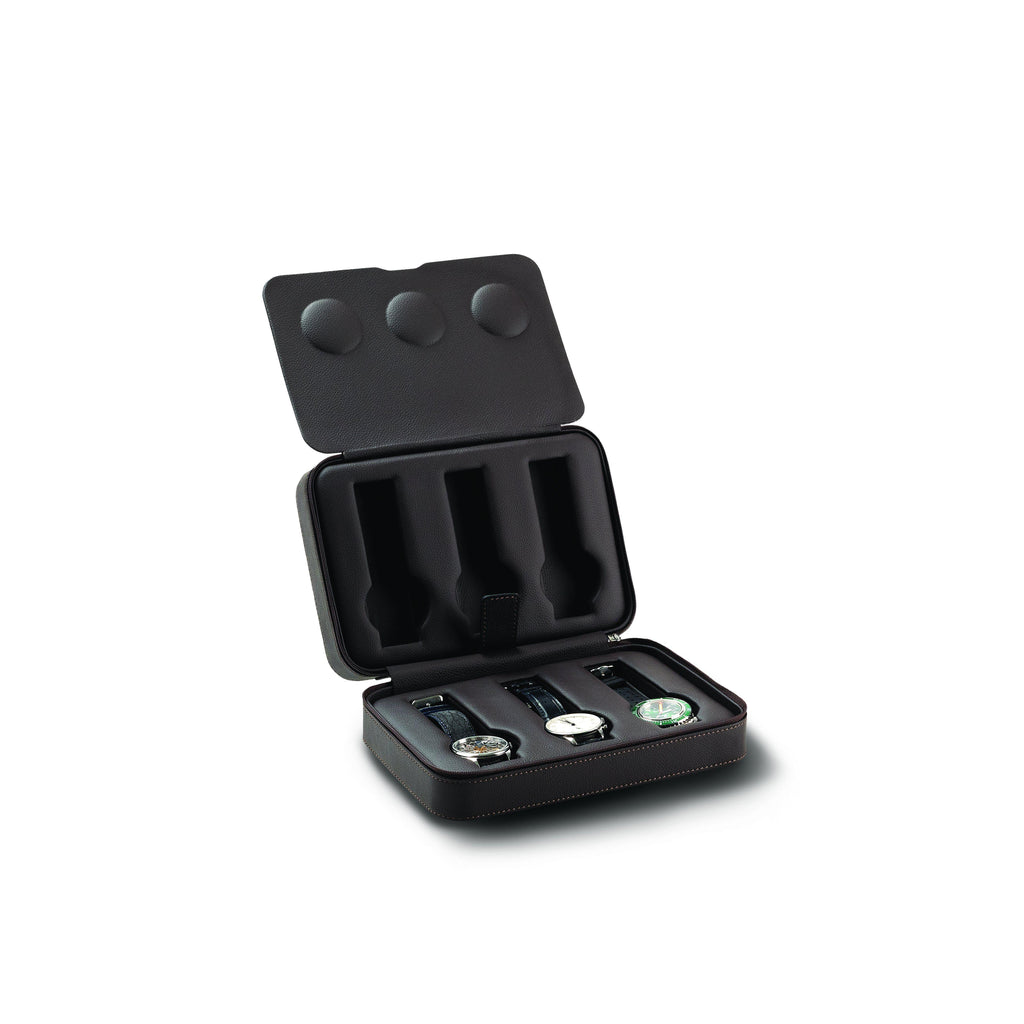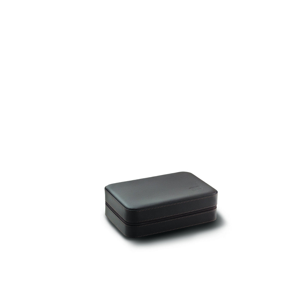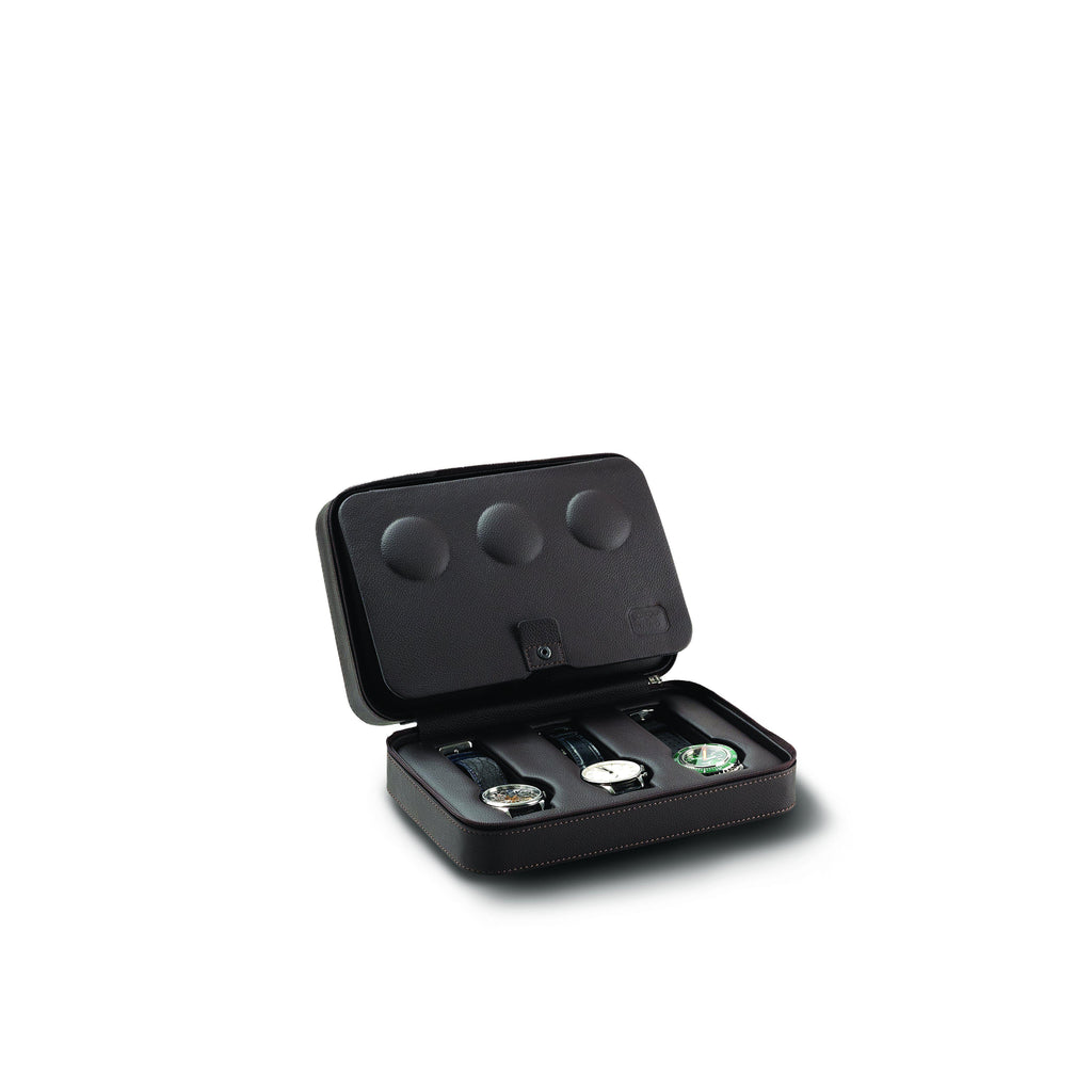 luxuriöse Uhrenbox in der Farbe braun, der Luxusmarke Scatola del Tempo. Das Uhrenetui für 6 Uhren bietet Ihren Uhren einen optimalen Schutz. Die Uhrenbox aus edlen Kalbsleder handgenäht mit Ziernaht, innen Leder. Die Uhrenbox ist optimal für Reisen oder als Aufbewahrungsbox für Ihre Uhren Zuhause.