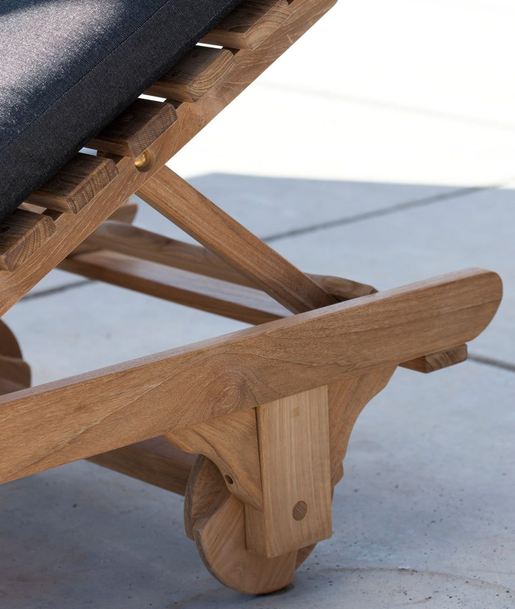 Die Teakholz-Kollektion CHELSEA zeichnet sich außer durch die Einzigartigkeit des Designs durch ihre zurückhaltenden Ausmaße, die Liebe zum Detail und ihre natürliche Eleganz aus. Die in klaren Linien gestaltete Liege CHELSEA ist aus massivem Teakholz hergestellt.