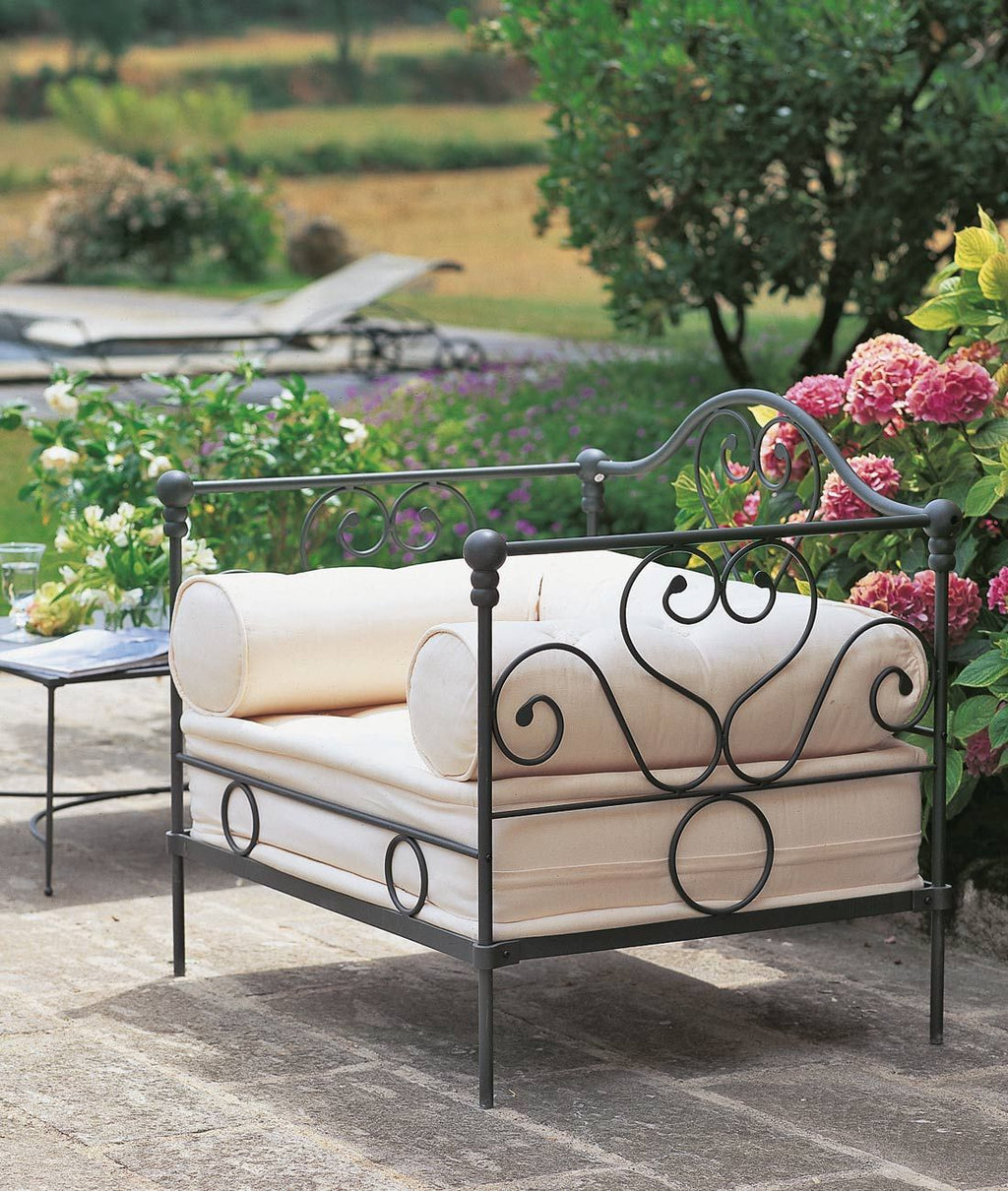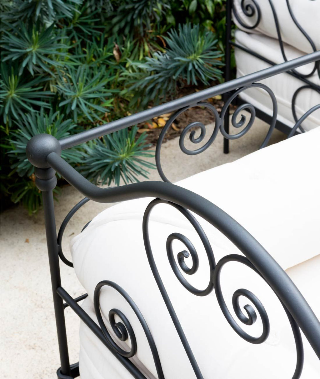 Die Serie AURORA aus verzinktem Schmiedeeisen mit Pulverbeschichtung nimmt ein toskanisches Design Ende des 18. Jahrhunderts auf. Zusammen mit den klassischen und eleganten natur Polstern, die separat angeboten werden, passt diese Serie auch bestens in den Innenbereich.