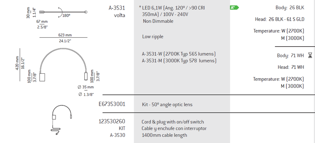 W (2700K / Typ* 565 lumens)M (3000K / Typ* 578 lumens)